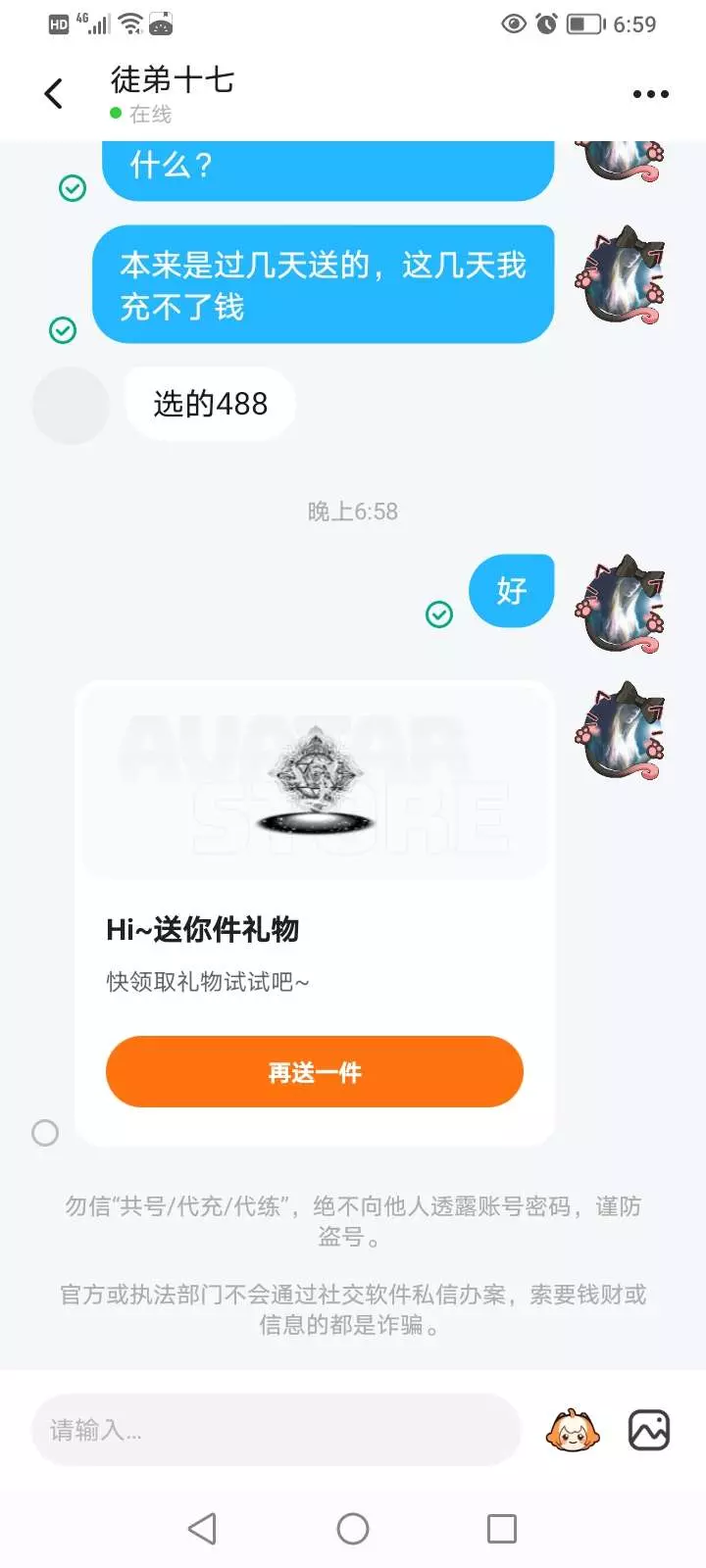 徒弟送我的,一上线就收到礼物卡片,不要羡慕我