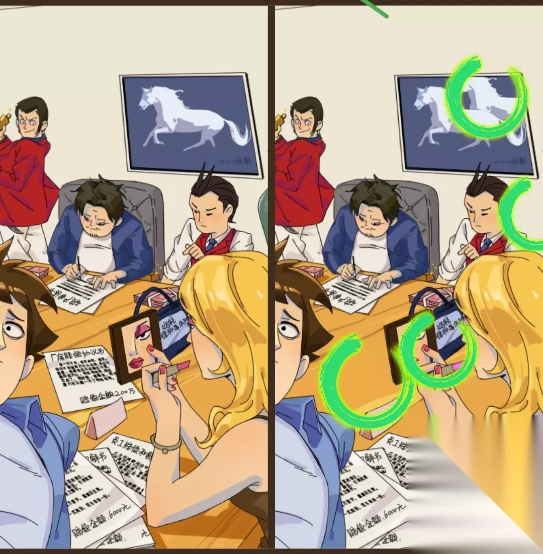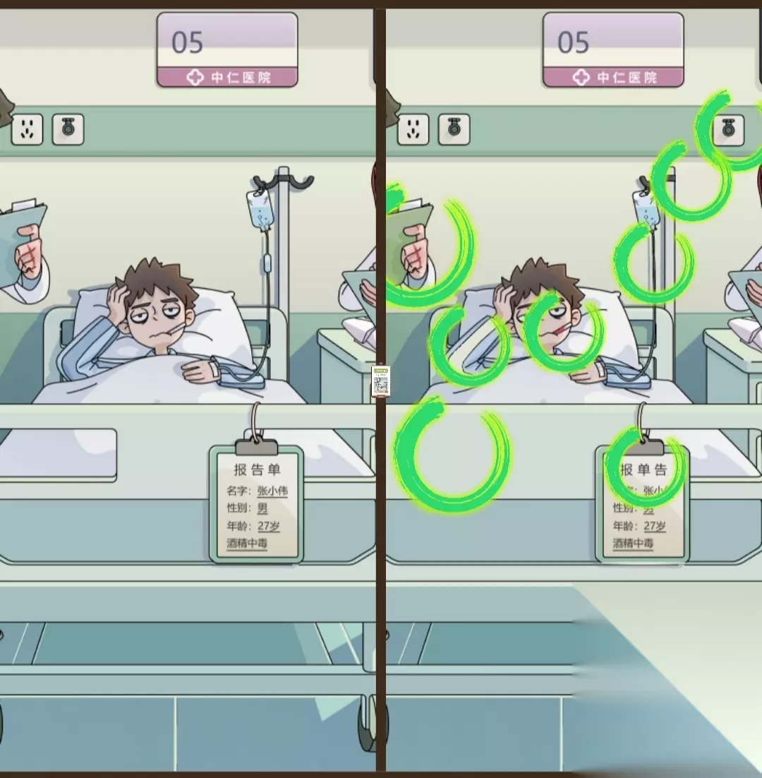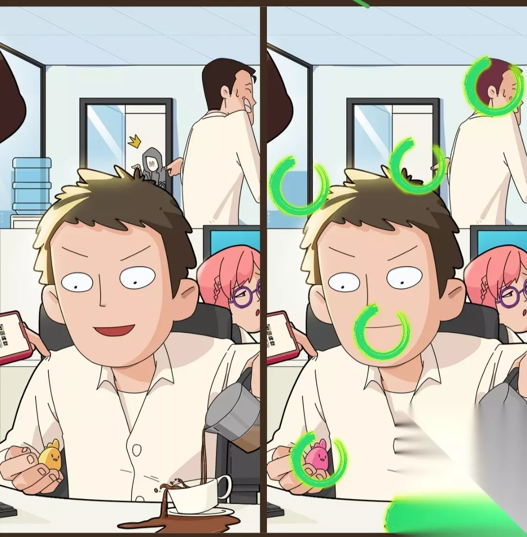 恋爱教父张小伟第一章找不同攻略(1-62)如下: 找不同的绿色圆圈很显眼,不要忽略绿色圈圈的旁边噢 第一关 我是谁?