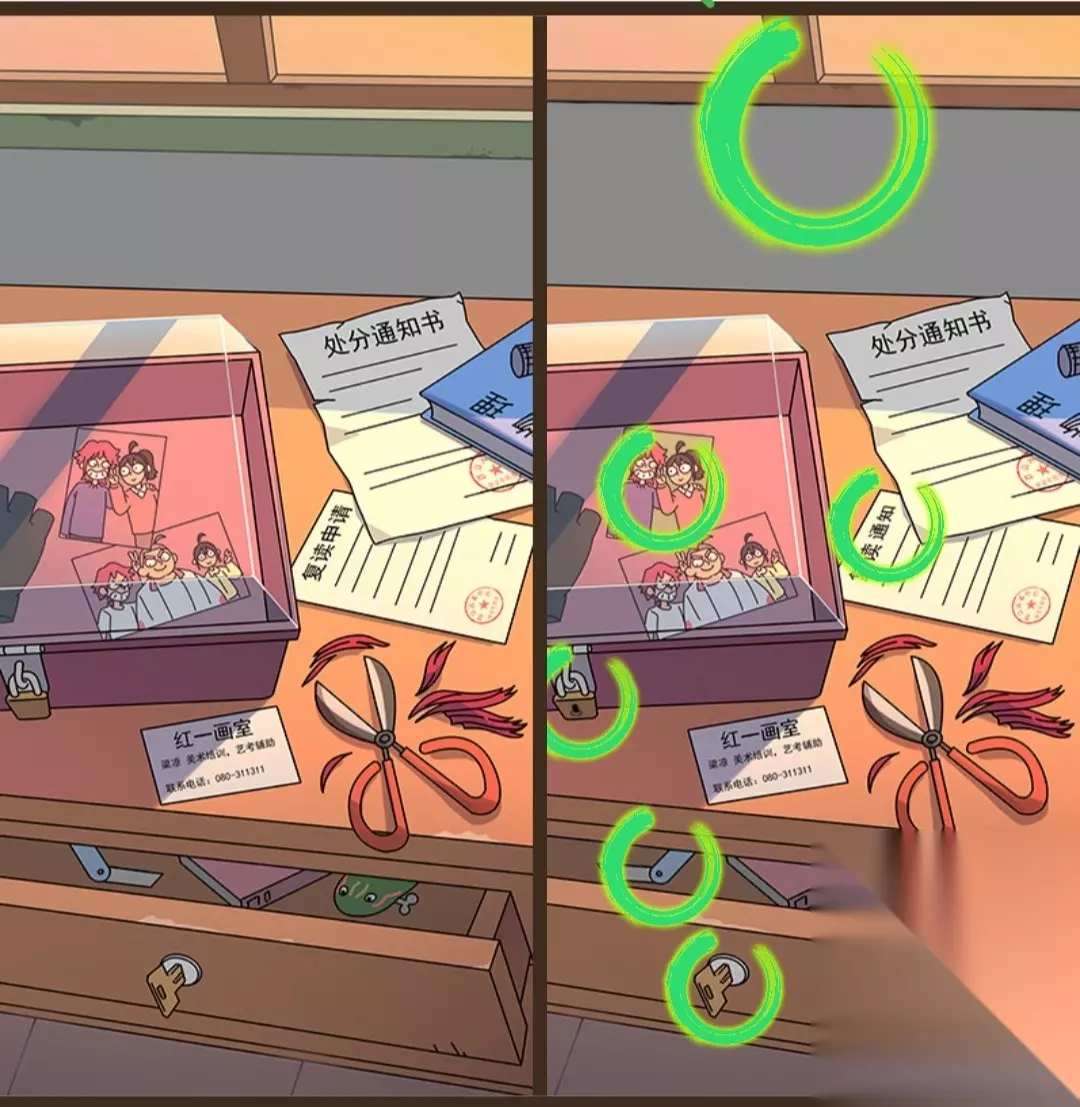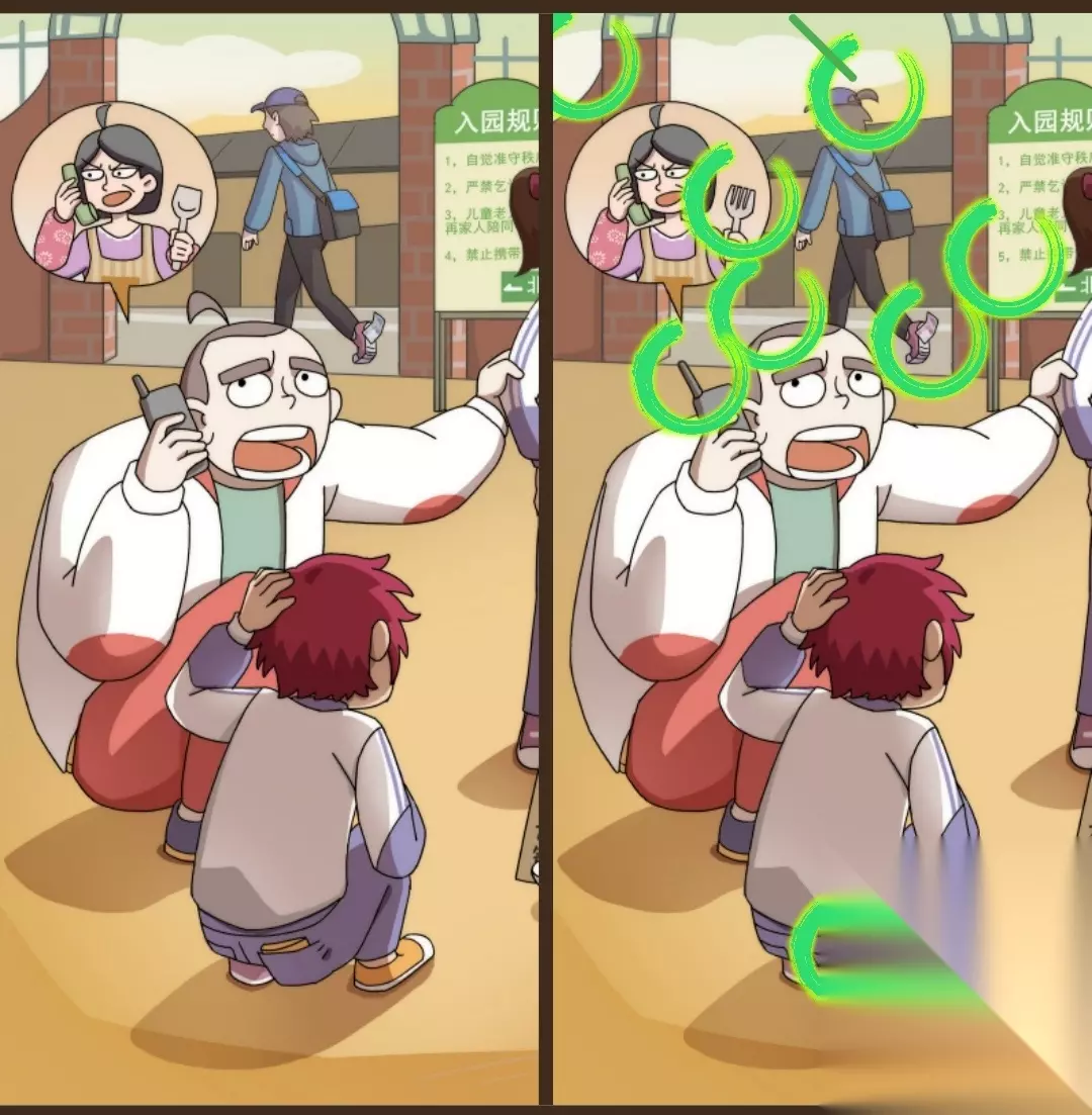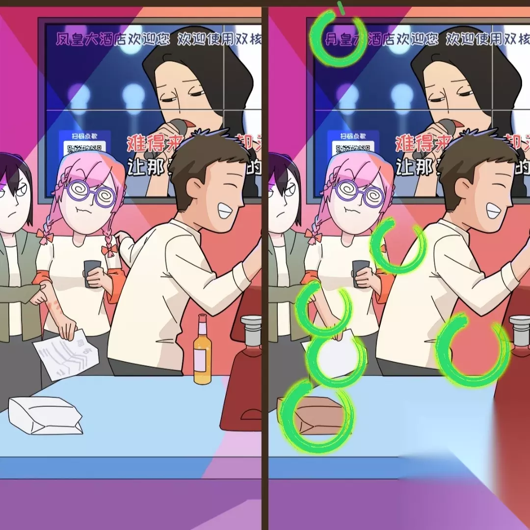 恋爱教父张小伟第一章找不同攻略(1-62)如下: 找不同的绿色圆圈很显眼,不要忽略绿色圈圈的旁边噢 第一关 我是谁?