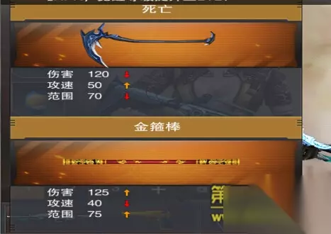 从以上对比可以看出,两者伤害持平,但在攻击速度上明显激光剑逊色很多,少了整整15个参数!但攻击范围却又比死亡多了七个参数,算是各有胜败。两件近战武器都不错,反正我是抉择不了选谁,不过死亡却在外观上有所增分,更加值得挑选! 【攻击距离对比】 1. 金箍棒