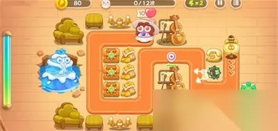 3:第三波的话,开始大冰冻boss,这里可以会把普通的兔子变成冰冻的兔子,我们可以让他在炮塔少的地方死亡,要么就不要太过于集中,不然被冰冻了解不开; 4:同时这个关卡也要尽快的清理boss的三个箱子,里面是火瓶子专门对付这个boss用的; 5:第四波到十二波,解开第一个火瓶子之后升级,然后我们顺便把三个火瓶子都解锁了,集中打boss就好了,第六关就会出现捣蛋兔,我们注意它和补底板的漏洞就好了。