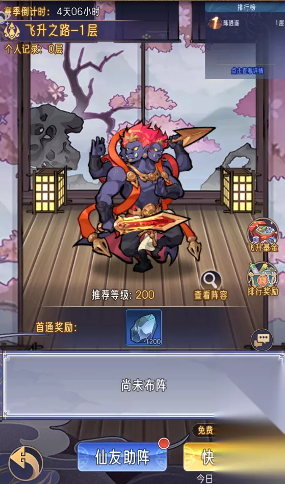 3.飞升之路 飞升之路是一个队伍爬塔的模式,仙友还可以招募好友的神将助阵,但不能超过自身战力的120%,仙友也可以将自己的神将助阵出去获取友谊值。 小貔貅建议该模式在完成日常必做项目后,根据自己的战力进度攻打,可以获取许多装备精炼和升级的材料,可以极大的增加战力。