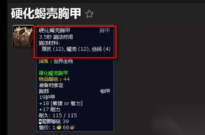 3、玩家制作2套硬化蝎壳胸甲,所需材料如下: