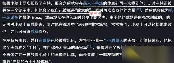 2、如果小骑士两次都救了左特,那么之后就会在愚人斗兽场的休息处再一次找到他。此时左特正被关在一个笼子中。他会成为第一场试炼的最终 Boss。