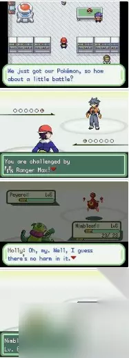回到道路502图二处 上楼开始三连战 对方精灵全部都平均是9,8级 所以练级很重要