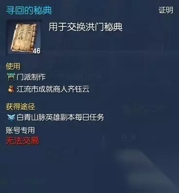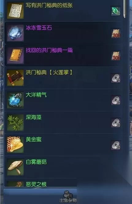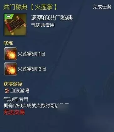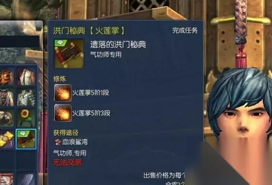 当我们做完补刀10次并得到秘典的时候,就可以做接下来的秘籍任务了。 (任务大致流程:武神塔NPC对话→白雾森林NPC对话→失落的永灵族遗迹副本→白雾NPC对话→武神塔NPC对话→江流市成就商人购买特殊物品→冲角团平东舰队NPC购买特殊物品→武神塔NPC对话,完成秘籍任务)简直丧心病狂跑断腿有没有 写有洪门秘籍的纸张+写有洪门秘典的扇子(海蛇兑换员20个恶女徽章购买)恶女徽章可以在积分商城购买,一天最多五个。