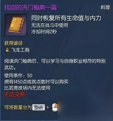 第五个秘籍: 冰冻雪域石需要刷齐一套雪域八卦才能购买,修罗火焰可以直接F5购买。拥有两者后点击右键合成,然后服用即可。