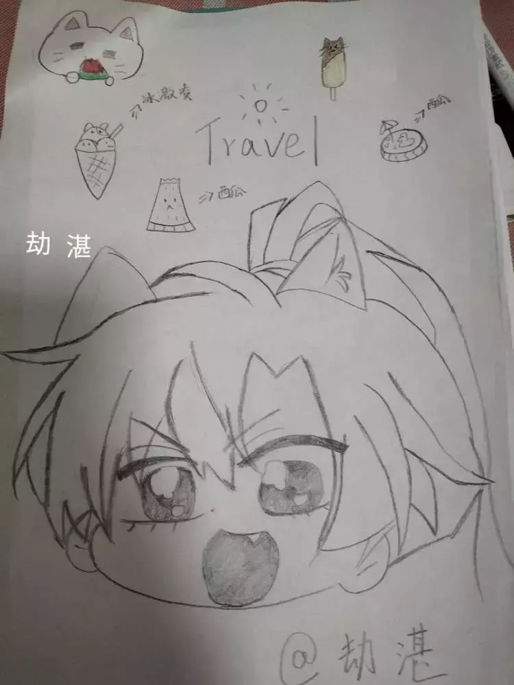 墨燃占了一大半,所以夏日素材有点小,夏日素材有西瓜雪糕小兔子😝