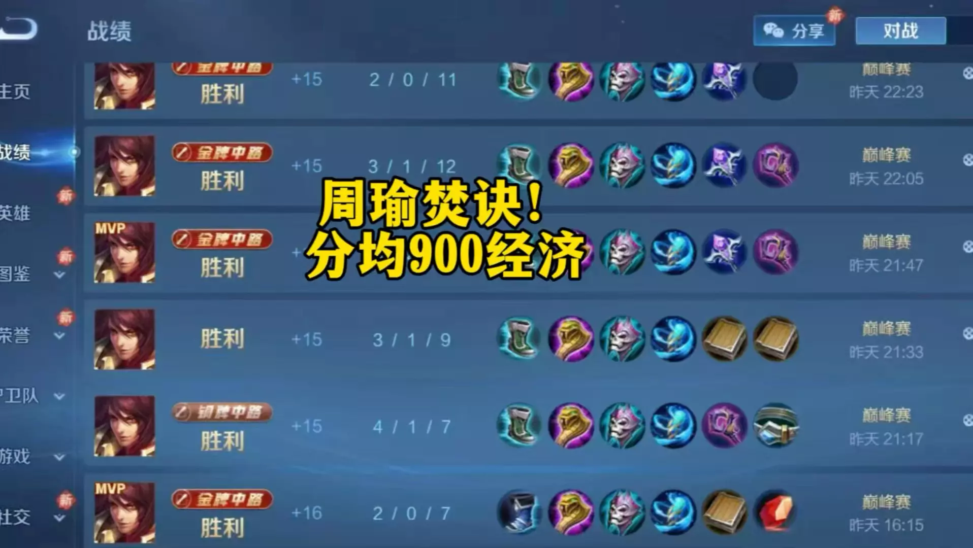 周瑜 周瑜焚诀!分均900经济的暴富打法!