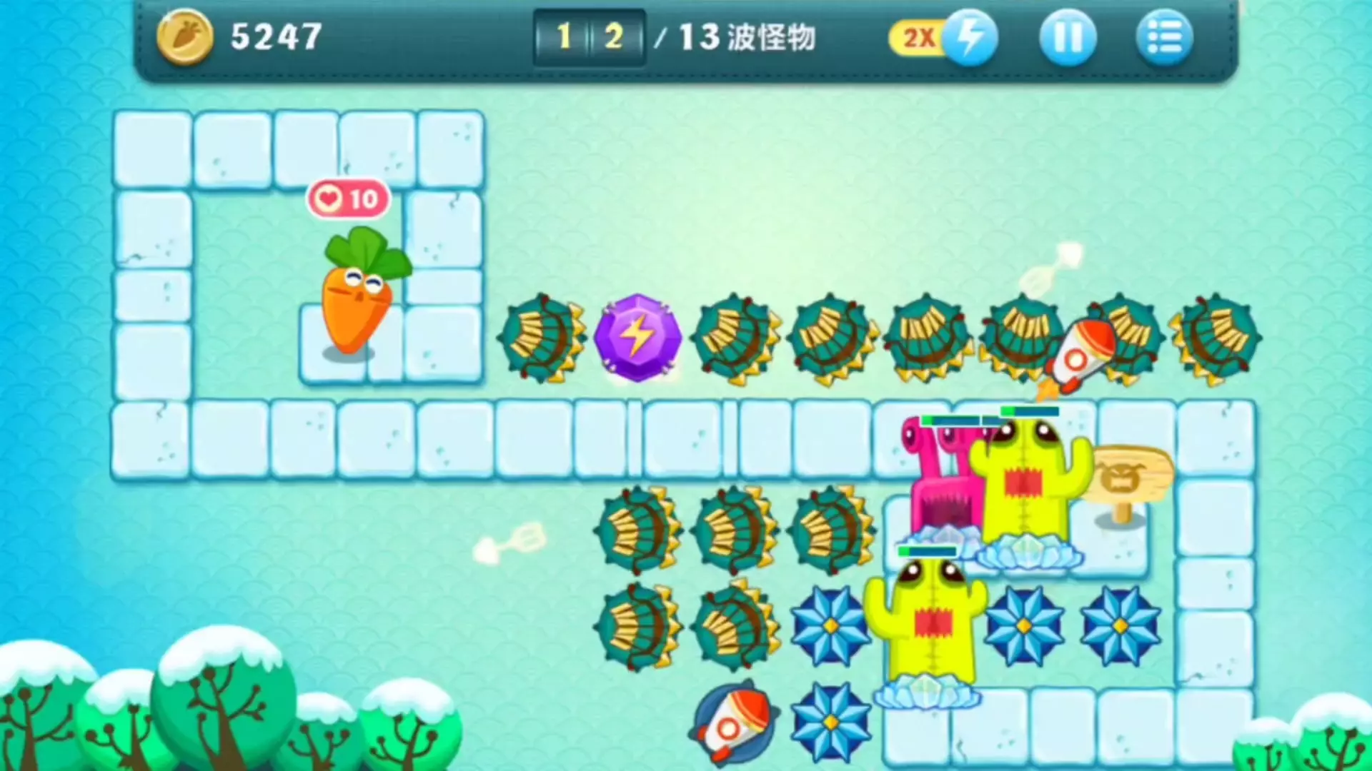 《保卫萝卜3》是“保卫萝卜”系列经典续作,完美继承前代经典清除塔防玩法,众多全新炮塔携带全新技能加入,工厂、集市、码头三大全新主题地图。