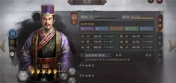 8、荀攸: 而荀攸则是五谋臣队伍的最后一名武将,该武将在游戏中可以造成相当高的持续性伤害,而且还可以降低敌方的输出,和程昱搭配非常合适。