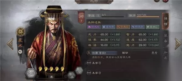2、袁术: 袁术最大的特点就是超高的兵刃和谋略暴击率加成了,而且在游戏中袁术的武力和谋略完全一样,可以搭配各种阵容中使用。