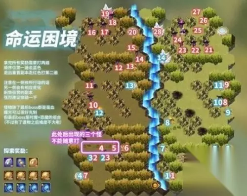 剑与远征命运困境3过关技巧 剑与远征命运困境3攻略 每一个游戏都有很多不一样的副本,这些副本的存在是为了让玩家更好的获得装备、经验、钻石、金币等等,都是为了能让玩家有更好的游戏体验。剑与远征在命运困境1/2开放之后,很快又迎来了命运困境3这个副本,同样的玩家通关后也是可以获得丰厚的奖励。那么具体怎么通关呢,小编为大家做了一个总结。 副本开启的时间为21号的8点,想必很多小伙伴已经提前进入游戏开始了副本。但很多玩家都无法通过,大家可以根据我给的路线图走,就可以通过。这边要注意的是4、5两个会出现三个怪,这边大家可以不要随意的打。如果想要把奖励全部都拿就需要打两遍,第一遍为蓝色然后推出副本重置一下在打红色,大家要注意你在一边的行动有改变那么另外一边也会跟着变化。最后除了BOSS,其他小怪用耀光都是可以轻松打败的。最后boss小编推荐大用恐魔组合是很好通关的。希望大家早日拿到副本奖励。