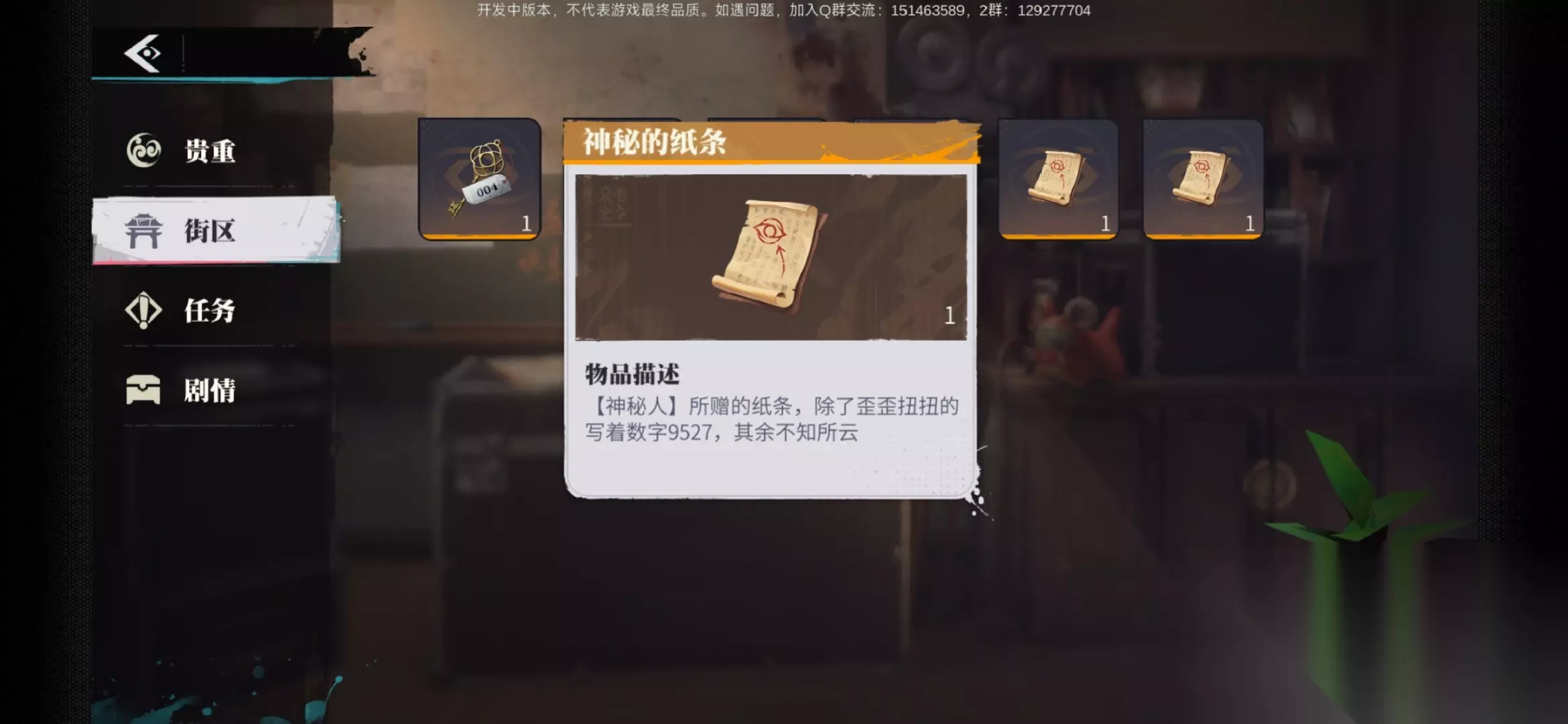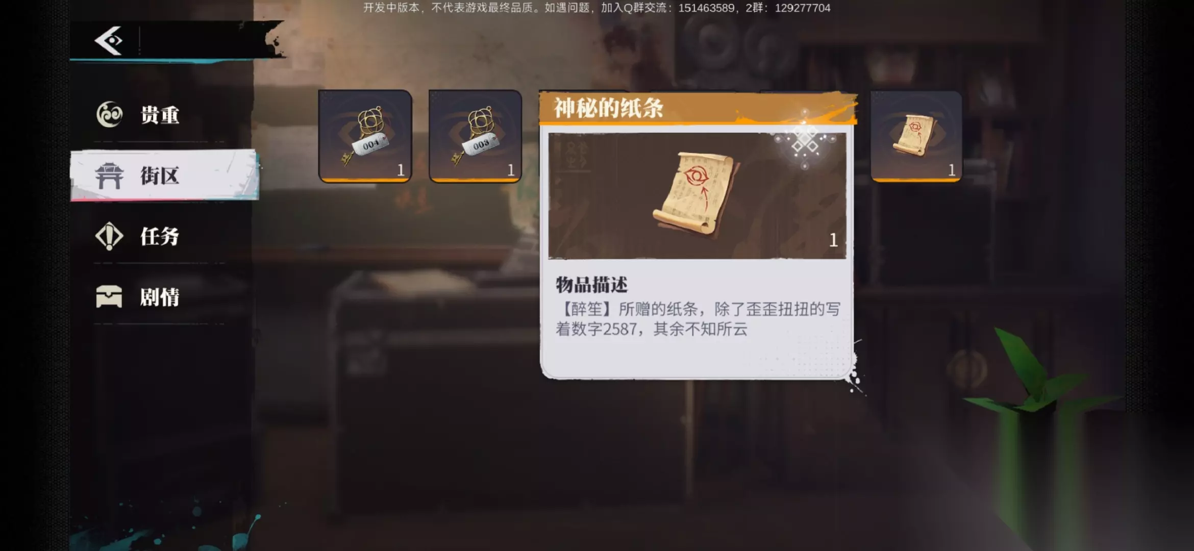 2完成后醉笙会给出带有密码的纸条密码是2587