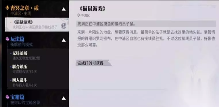 接下来要说的是宝箱-子鼠的私房钱 首先我们会接到任务-猫鼠游戏