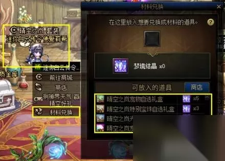 1、道具来源 [梦境结晶]可通过活动NPC的材料兑换功能获取,新春礼包中的宠物礼盒、宠物宝珠礼盒、光环礼盒、宠物宝珠礼盒都可以兑换为数量不等的[梦境结晶]。