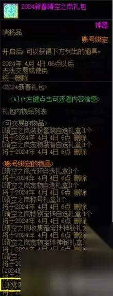 DNF在2024新年之际更新了幽暗岛、海量活动与新春礼包,新春礼包中有很多种不同的道具,部分玩家分不清这些道具的区别与用途,今天笔者就来简单介绍一下新春礼包中的各类道具,想要了解的小伙伴就跟随笔者一起来看看。