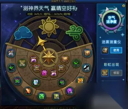 2、道具用途 [迷雾测量仪]可用于参与新春礼包的多买多送活动[测神界天气 赢晴空好礼],每次预测天气时会消耗1个[迷雾测量仪],并随机获得1种奖励。