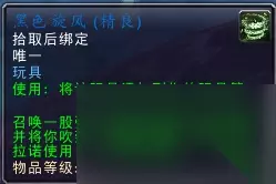 注:100级的精英,每日只有一次拾取,多刷无用。 黑色旋风-玩具 影月谷和阿兰卡峰林的交界处,影月谷下图位置高山上(坐标:29.6 46),会刷新一只稀有怪【锢魂者托雷克】,击杀有12%的几率拾取玩具-黑色旋风。