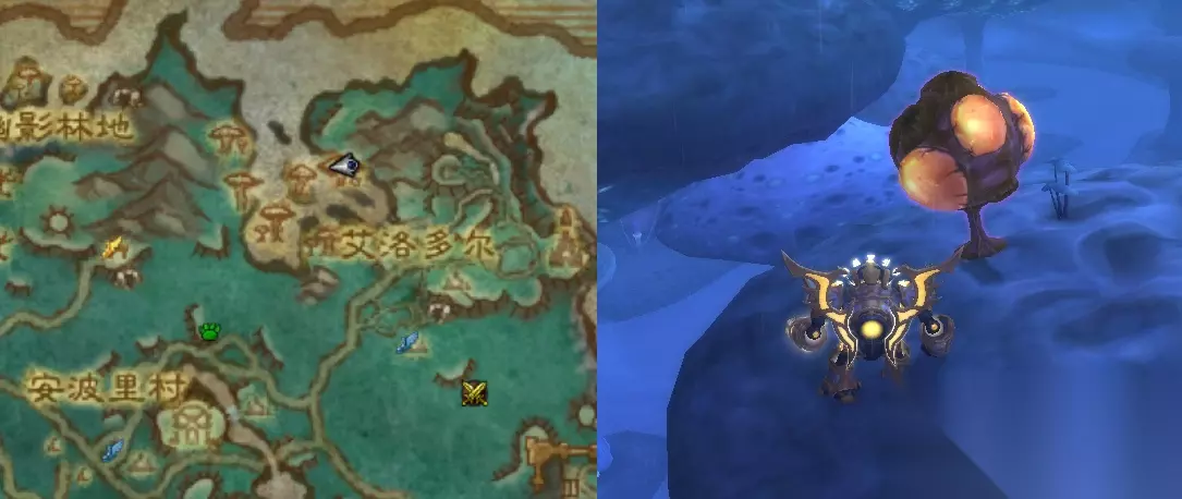 同样在黯影沼泽的狍子林(蘑菇的上面),坐标:55.7 19.7,有一个发光的菌菇,点击便可获得。