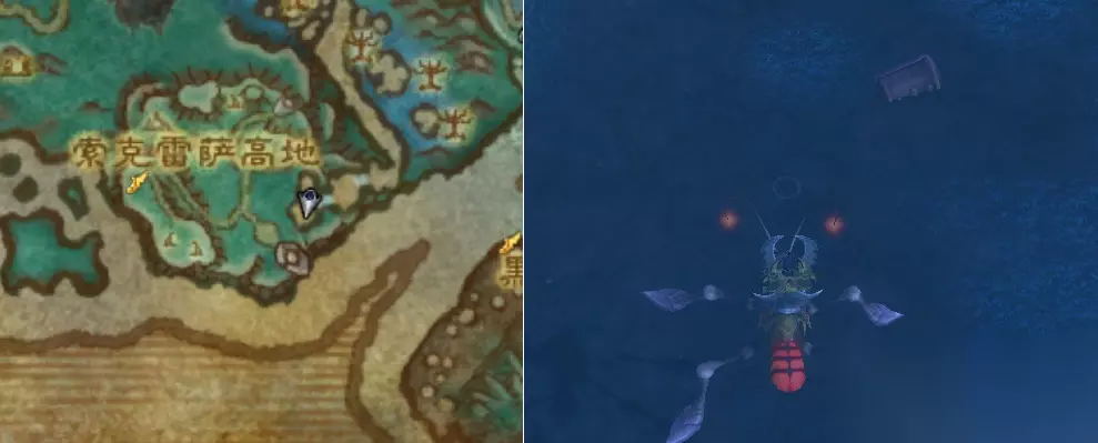 索克雷萨高地区域的水底下有一个宝箱(坐标:51.2 79),打开即可获得。