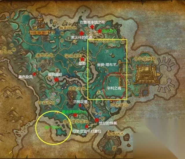 位于黯影沼泽的狍子林中,有一只孢子精英巨怪【巴鲁恩】,击杀会掉落玩具-巴鲁恩丰饶之花 坐标:52.9 16.9