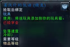 莱沃什的低语-玩具 位于卡拉高尔山(48.8 22.6)处,NPC唤风者图罗戈召唤【莱沃什】,不过会受到稀有怪的反噬,你为他复仇后,便可得到玩具【莱沃什的低语】。 低配版漂浮技能,10秒