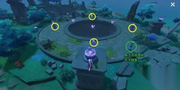 4、用雷元素点亮4个方碑,水月池的水位会下降一半。
