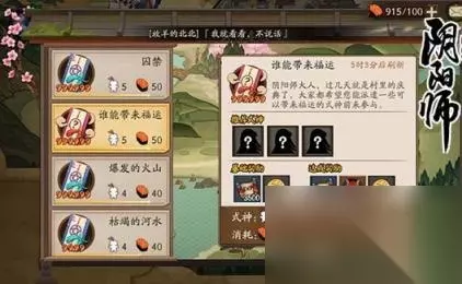 谁能带来福运推荐式神是什么?加成式神是哪个? 答:最佳选择 惠比寿+座敷童子+招福达摩,如果你以上式神的等级比较低的话,其他剩余两个要尽量选择高星式神 缺失的花札