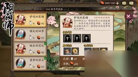 梦境的裂缝推荐式神是什么?加成式神是哪个? 答:最佳选择 食梦貘+巫蛊师+蝴蝶精,都是比较冷门的式神,所以第四个位置最好上个等级高的大哥。 钓鱼比赛