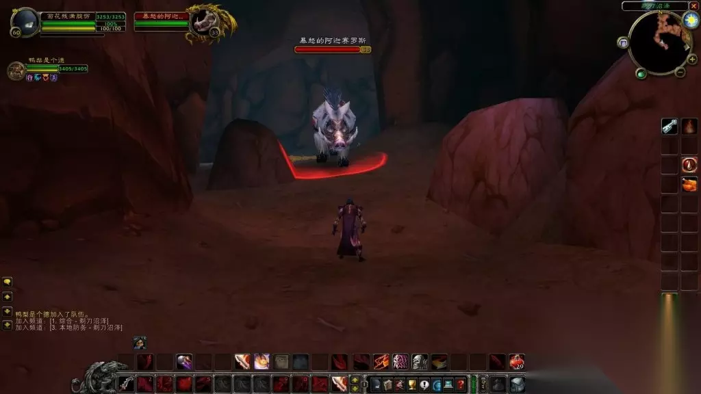 9.沿着通道向前走就看到了暴怒的阿迦赛罗斯。干掉这只暴怒猪,有概率掉落蓝色的【猪牙匕首】。