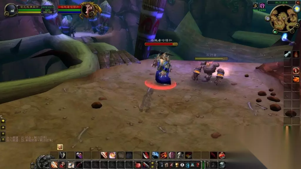 7.继续向前走,过第一座吊桥,来到中间的小平台上。这里有可能出现一个稀有精英唤地者哈穆加。他有概率掉落一把蓝色双手杖【灵风法杖】,加5智力15精神3耐力。属性还是不错的。