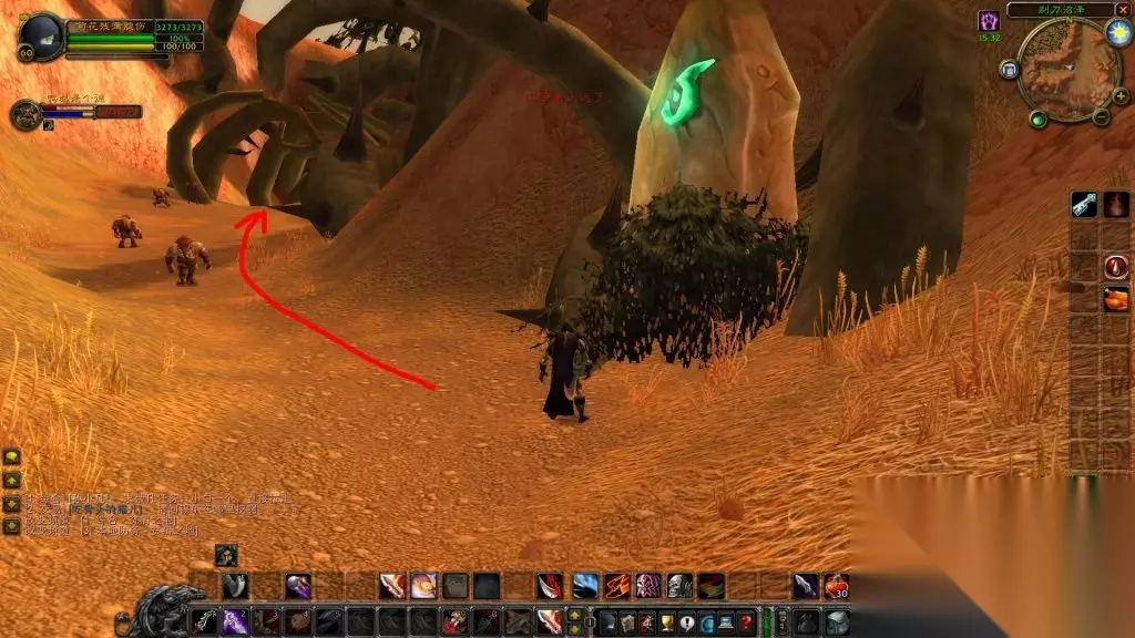 4.原路返回至副本入口处,转向右边岔道。走到小地图最右边时,出现了“个”字型分叉。先走左边击杀阿格姆,这货血量不够的时候会逃跑,要先清外围再打他。他好像不掉什么好东西……