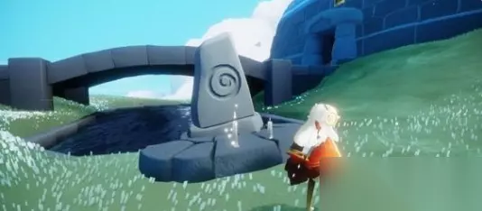 3、玩家在大宫殿桥底下的水池边上就可以找到石碑,然后靠近石碑旁的光圈即可进行冥想。