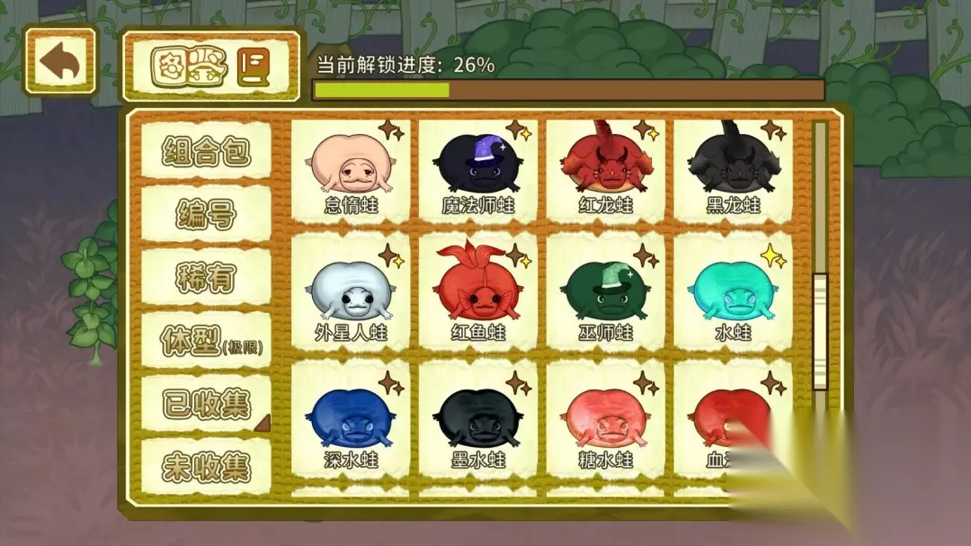 魔性丑蛙等你来抓 144只造型奇特的魔性丑蛙等你收集,每只丑蛙都长相别致,丑萌又上头!你能集齐池塘里扭动的、蹦跶的、难以描述的“圆滚滚”全家福吗?