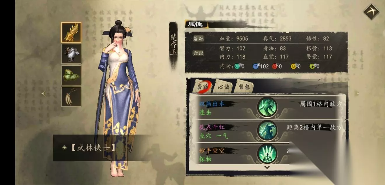3、楚香玉: 伤害中庸,攻击范围一般,优势在于两回合cd的控制可以在前期帮助主角打大世界的boss,可以中期换掉。 4、斗佛净明: 看似肉盾,其实满级后一般,但是大范围聚怪能力配合其它人的aoe伤害效果爆炸,推荐使用。