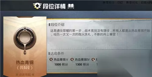 和平精英的所有段位顺序是什么?和平精英都是现在非常热门的枪战竞技对战手游之一,受众的玩家们非常多,都能够让你们在百人竞技场中,创造出非常出色的作战玩法,乐趣多多,那么你们在这里玩游戏的时候,都是会有着属于自己的段位等级,大家是能够通过自己的实力,在这里赢得一场又一场的胜利,提高你们自己的段位等级哦,还有不了解这一些段位等级顺序的朋友们,也没有关系的,下面就给你们带来了完整的和平精英的所有段位顺序介绍,希望能够帮助到大家。 和平精英MOD作弊菜单 飞行射击 / 1.98GB 查看 和平精英段位等级顺序2023 : 段位从低到高依次为热血青铜、不屈白银、英勇黄金、坚韧铂金、不朽星钻、荣耀皇冠、超级王牌、无敌战神; 按照低到高的段位等级段位机制就不太合理了,因为获得王牌不难,获得战神也太难。除超级王牌、无敌战神外,其余各段位将有5个子段位供玩家所拥有。排名积分越高越好。整体来说,段位重置的整体规则是段位越高,下跌越惨烈,低于金5的新手段也不用降级。下面,就段位重置在玩家真实比赛中的作用进行深入的剖析。 各段位详细分数: 热血青铜:青铜五1000积分、青铜四1300积分、青铜三1400积分、青铜二1500、青铜一1600 不屈白银:白银五1700积分、白银四1800积分、白银三1900积分、白银二2000积分、白银一2100积分 英勇黄金:黄金五2200积分、黄金四2300积分、黄金三2400积分、黄金二2500积分、黄金一2600积分 坚韧铂金:铂金五2700积分、铂金四2800积分、铂金三2900积分、铂金二3000积分、铂金一3100积分 不朽星钻:星钻五3200积分、星钻四3300积分、星钻三3400积分、星钻二3500积分、星钻一3600积分 荣耀皇冠:皇冠五3700积分、皇冠四3800积分、皇冠三3900积分、皇冠二4000积分、皇冠一4100积分 超级王牌:4200积分 无敌战神:全服积分前500名,这个段位排名每天都会更新