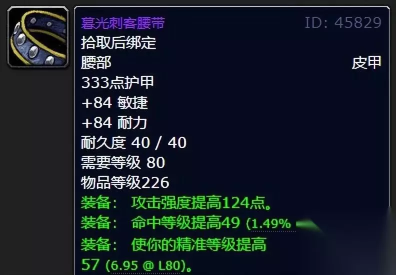 水晶森林碎片看的战士和DKT看的哈喇子已然直流,那么这款极品尖货持盾护卫束带真的是可以成为你首选兑换的装备了。如果要说他的缺点,那么就是少了两个插槽,但是在如此强力的绿字属性之下,这些其实都不重要,必肝! 七:暮光刺客腰带