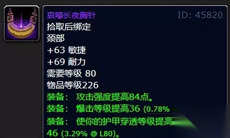 记得前不久有个输出战士问喵叔,难道就没有加力量的项链嘛!那么他来了,这款尖刺卫士项圈喵叔我就倾情推荐给这位虚心请教的战士大佬。更为难能可贵的是P2阶段的项链真的给白捡似的,只要19个牌子而已,实在是你小土人去团本浑水摸鱼必备加持了! 四:哀嚎长夜胸针