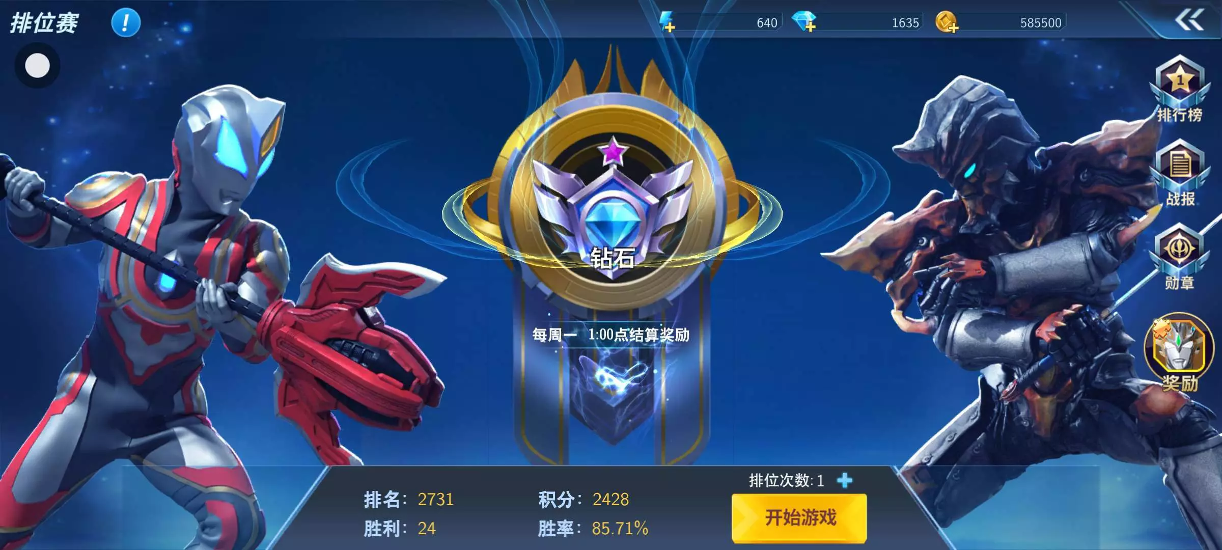 才第三天就钻石了。(没充钱)🤓🤓🤓