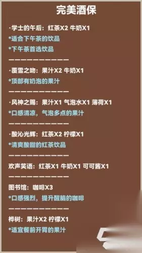 酒保挑战活动:定制口味配方分享 蓝字部分是可能出现的描述,目前还不知道全不全。 via:原神情报搬运机器