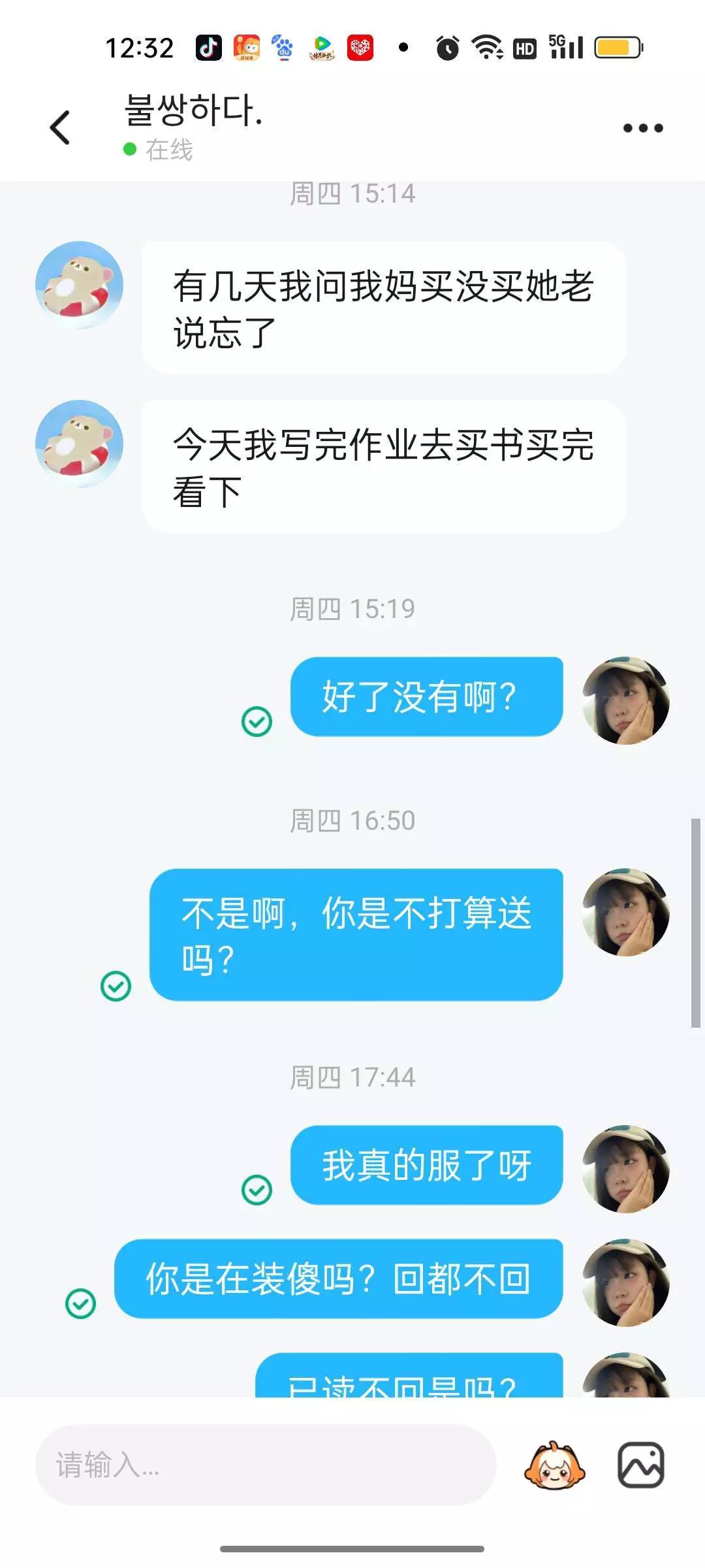 我真的服了呀,说了送礼物的,而且我#也送你了,送了一个好贵的,然后你答应送我,不是啊,不送给我拉黑呀,往这出是吧的哦,也送了一个几个派对币的一个头发罢了。,