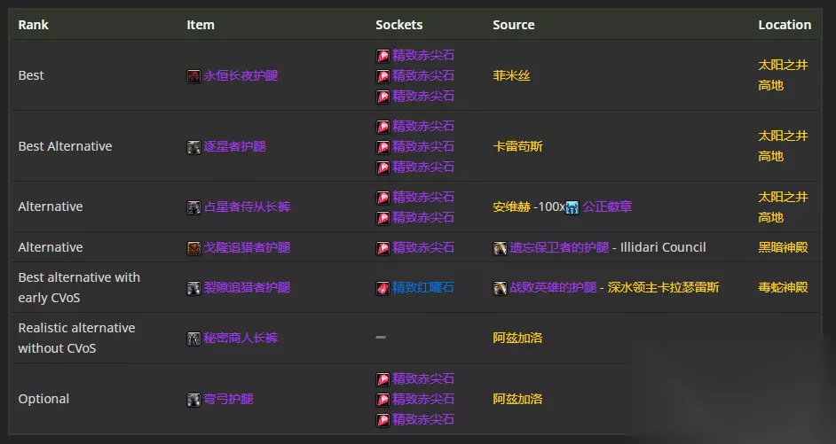 腿部装备首选永恒长夜护腿,附魔推荐 虚空毒蛇腿甲片
