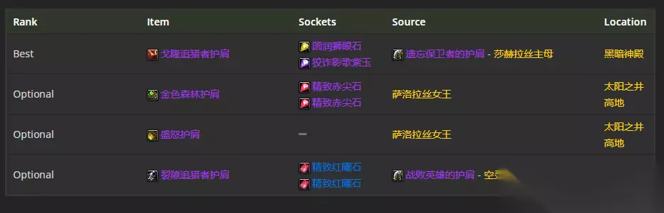 肩部装备首选戈隆追猎者护肩,附魔推荐天灾的威严