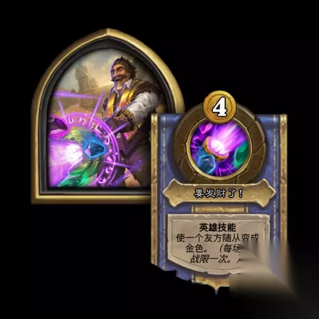 一、英雄介绍 【酒馆英雄】:雷诺·杰克逊 【技能效果】:4费 要发财了! 使一个友方随从变成金色。(每场对战限一次。)