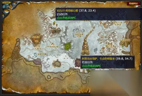 三、任务详细流程 1、任务开始:联盟玩家找到NPC伯瓦尔·弗塔根公爵(龙骨荒野,弗塔根要塞)领取任务,部落玩家找NPC小萨鲁法尔(龙骨荒野,库卡隆先锋营地)领取。