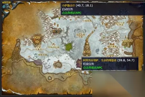 二、任务相关地点 接取NPC小萨鲁法尔(龙骨荒野,库卡隆先锋营地)、完成NPC阿莱克丝塔萨,生命的缚誓者(龙骨荒野,龙眠神殿)