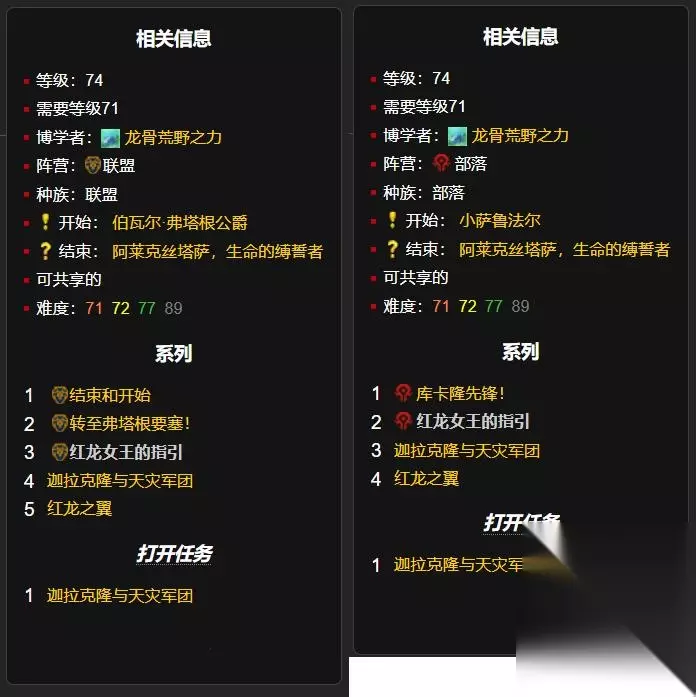 接取NPC伯瓦尔·弗塔根公爵(龙骨荒野,弗塔根要塞)、完成NPC阿莱克丝塔萨,生命的缚誓者(龙骨荒野,龙眠神殿)