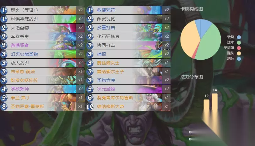 AAECAea5AwioigSHiwT7vwTp0ASW1ASY1ASq3QSX7wQQwvEDivcDhI0EgJ8EtKAEjrAElrcEmLoE+b8EwMoEr94EsN4EquIEq+IExuIEheUEAA== 虽然整套不如快攻瞎前期那么犀利,但是打起来会更加的平滑。针对王子带来的血量上限增加,快攻可以说是被砍了一刀的。整套打法上依靠弗丁找大帝和圣物酱(匠),再利用圣物和随从叠大帝的注能,在圣物酱注能满的情况下,三个圣物的实力不可小觑。前中后期的都不会弱,容错相当可以。 术士:快乐诅咒术