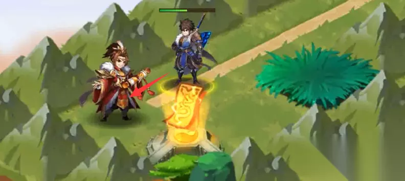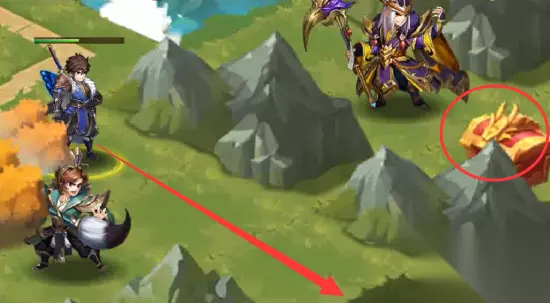 6、找到NPC庞统对话走剧情,击败庞统(必须击败,会触发后续剧情改变地图中阵法),然后去拿左边一点的第5个宝箱(被黄色树冠挡住了)